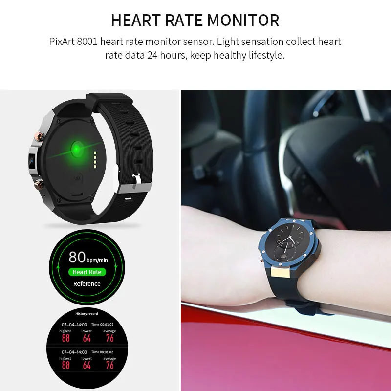 * Heart rate monitor: PixArt 8001 heart rate monitor sensor . Light sensation collect heart rate date 24 hours, keep healthy lifestyle