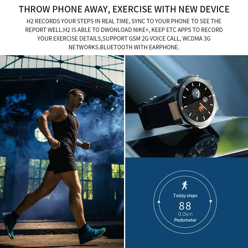 SENBONO H2 records your steps in real time,sync to your phone to see the report well.H2 is able to dwonload app,keep ETC apps to record your exercise details,Support GSM 2G voice call,WCDMA 3G networks,Bluetooth with earphone