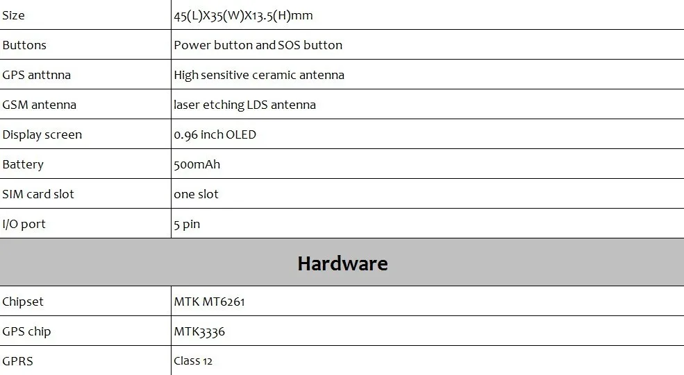Long standby time The device adopts 500mahz battery and will enter into dormancy stage automatically .if no movement is detected , the standy time for the gadget is 3-4 days