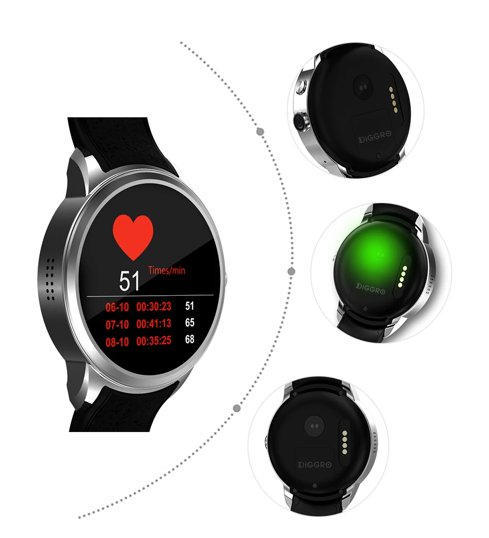 Diggro DI01 16GB+1GB Smart Watch Android5.1 Heart Rate Monitor IP67 Waterproof Support 3G WIFI GPS Nano SIM card MTK6580