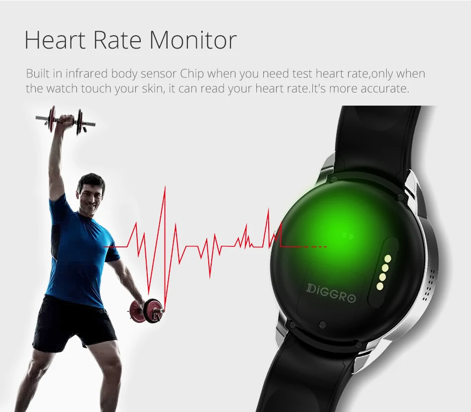 Built in infrared body sensor Chip when you need test heart rate,only when the watch touch your skin, it can read your heart rate.Its more accurate.