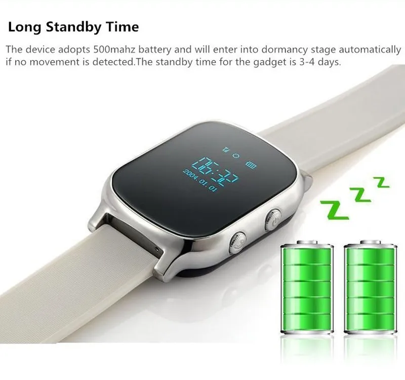GPS Watch Tracker is a new generation of personal GPS tracking gadget for kids/adult/elderly safety. It is accurate, discreet and reliable. With QuadBand GSM connectivity, the GPS Tracker works anywhere in the world. With GSM positioning and GPS positioning, user can accurately track whtehter the device indoor or outdoor. With voice message, call button and twoway voice function, user can have voice conversation with kids/elderly whenever they need your help. You will enjoy a piece of mind with knowing exactly where your love are.1: GSM quad-band (850MHZ, 900MHZ, 1800MHZ, 1900MHZ)2 : SMS query location3: Online Location4: track playback5: Telemonitoring6: electronic fence7: GPS, LBS positioning bidirectional8: HD two-way hands-free calls9: Support SMS / PC / mobile terminal client queries, text messages and Internet inquiries location information, Google plane and satellite maps.10: support for Android, IOS systems APP interface, easy to operate11: Two-color silicone strap mold, wear more comfortable environment Details screen:0.96" OLED SIm card:Single micro sim card slot network model:GSM Data Service:GPRS 2G:GSM 850/900/1800/1900 button:one one the watch Hardware info: GPS chip:GPS MTK3337 3 d acceleration sensor:Positioning accuracy to 5 to 15 m Battery: 500mAh bulit-in Standby time: 53hours talk time: 6hours. Basic info: SOS emergency call:set SOS phone No : long press SOS button for 3 sec will call to admin phone no. The family number: can set three SOS number, if the admin phone no. not answer,the call will loop three times SMS tracking : Send SMS to watch to get the watch\\\s position. PC,smart phone tracking : APP download by QR-code or from our website. LBS tracking: if not have gps signal, auto change to tracking by LBS apk APP download by QR-code or from our website.Warnings
