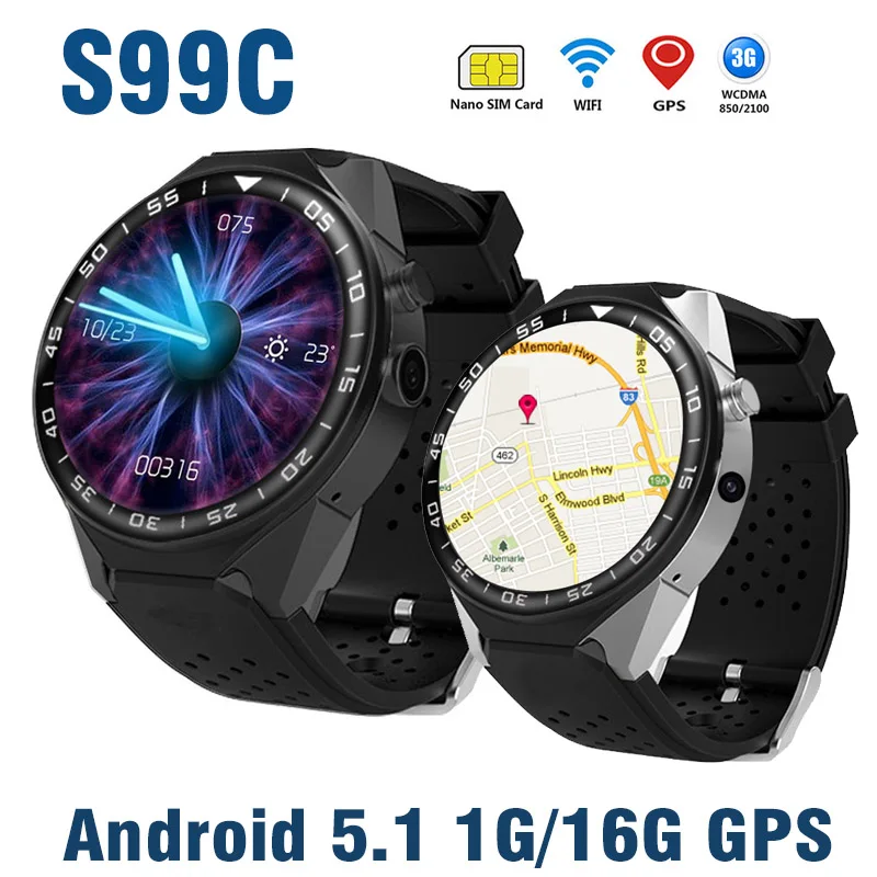 2018 Offers S99C 3G Smart Watch Android 5.1 Bluetooth Phone Watch MTK6580 Camera 1G16G Heart Rate Monitor Smartwatch WIFI GPS Video SIM Card smart gps tracker Rating: 5 out of 5