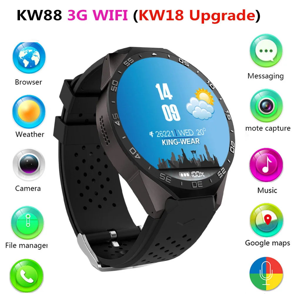 Big Limited KW88 3G Smartwatch WIFI GPS Bluetooth Smartwatch Android 5.1 Heart Rate Monitor For iphone huawei Call Watch 4G ROM 512MB RAM smart gps tracker Rating: 2.8 out of 5
