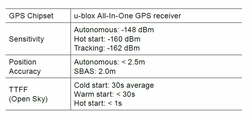 GPS Specifications: