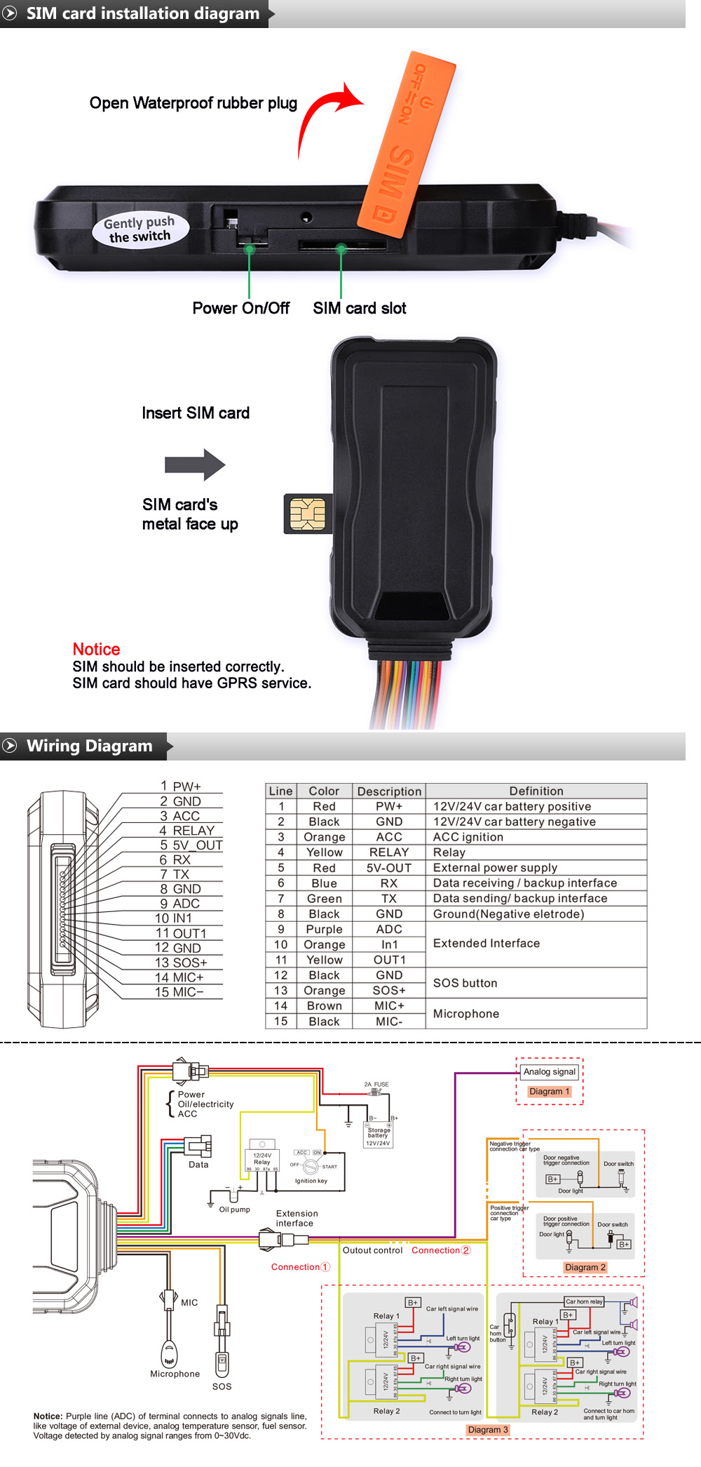 | LED Indicator | GPS(blue), GSM(green), Power(red) |