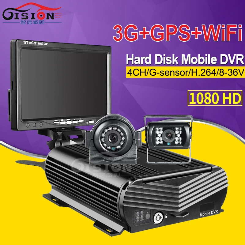 3g+gps+wifi hard disk 4ch ahd mobile dvr+2pcs 2.0mp cameras+500gb hard disk+7inch car monitor