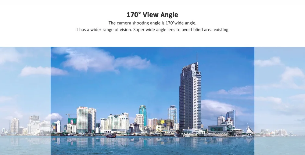 The camera shooting angle is 170 degree angle, it has wider range of vision. Super wide angle lens to avoid blind area existing.