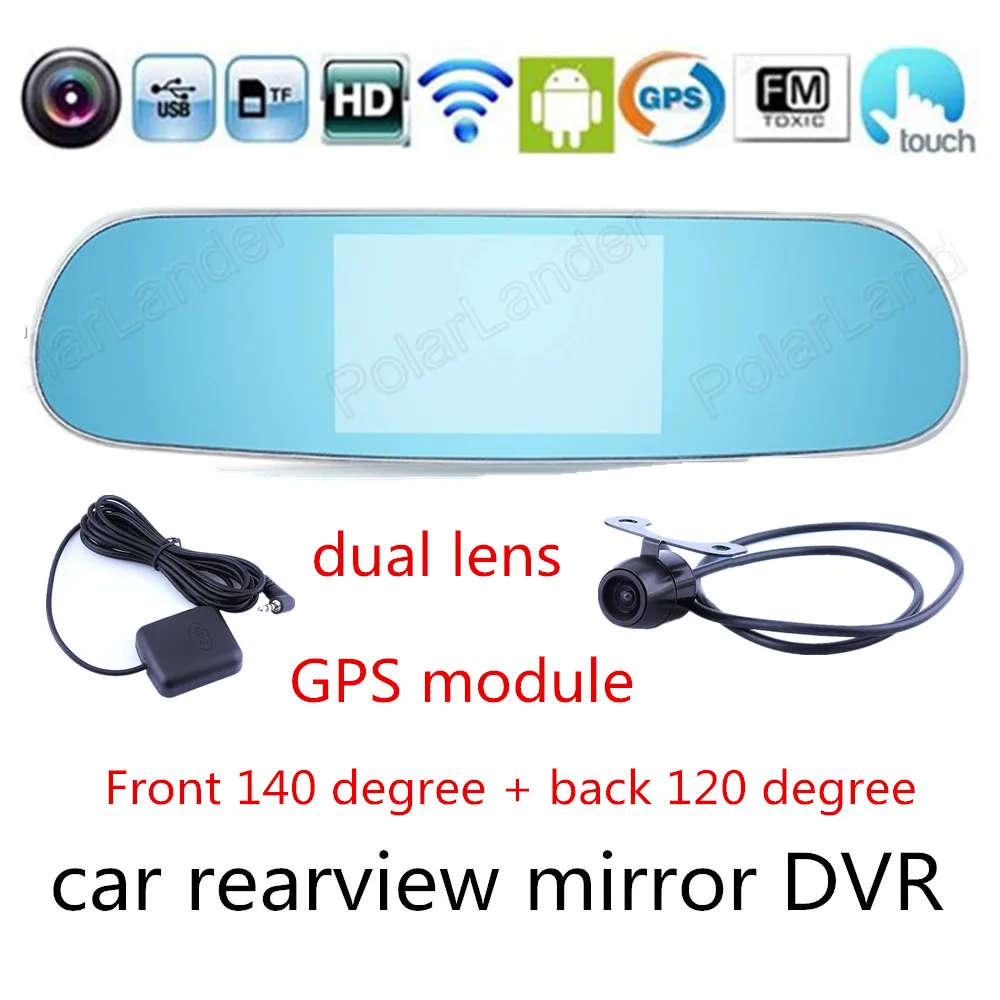 Terrific Promo hot New Car Rearview Mirror for Android two Cameras Recorder DVR Full HD GPS module GPS navigation WIFI FM transmitter smart gps tracker Rating: 4.8 out of 5