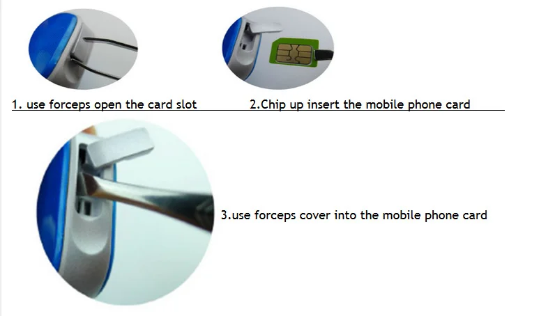 1. Before use, please test equipment model is correct, accessories are complete.2. In shutdown state insert support 2G GSM network SIM card (GSM 850,900,1800,1900MHZ)and open the caller id function and monthly flow (not less than 30 m/month traffic package).3.Power on: press on the power button for 3 seconds or more then powered on.4. Shutdown: When mobile phone APP display equipment online, through the app setting remote shutdown function to turn it off.When mobile phone APP display equipment offline, please take out the Sim card and long press power button for power off.5.Charge: insert the USB charging line, connected to the output of 5v - 1a standard mobile phone adapter, from no power to full about 2-3 hours.6,Installation method