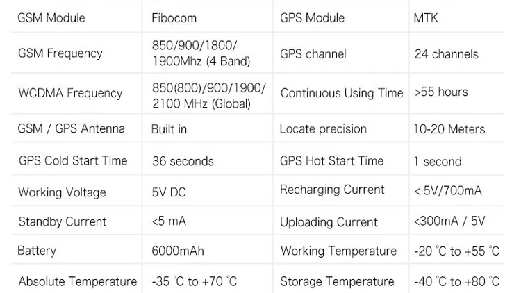 This product is with GPS module and GSM module, that has many new and unique functions, such as extra big battery (6000mAH), Water-Proof, powerful magnetic, LBS locate without GPS signal, check current location by iOS iPhone & Android App / Web / SMS / WeChat etc. Its standby time can reach over 2 month(about 60 days, when work mode 1).