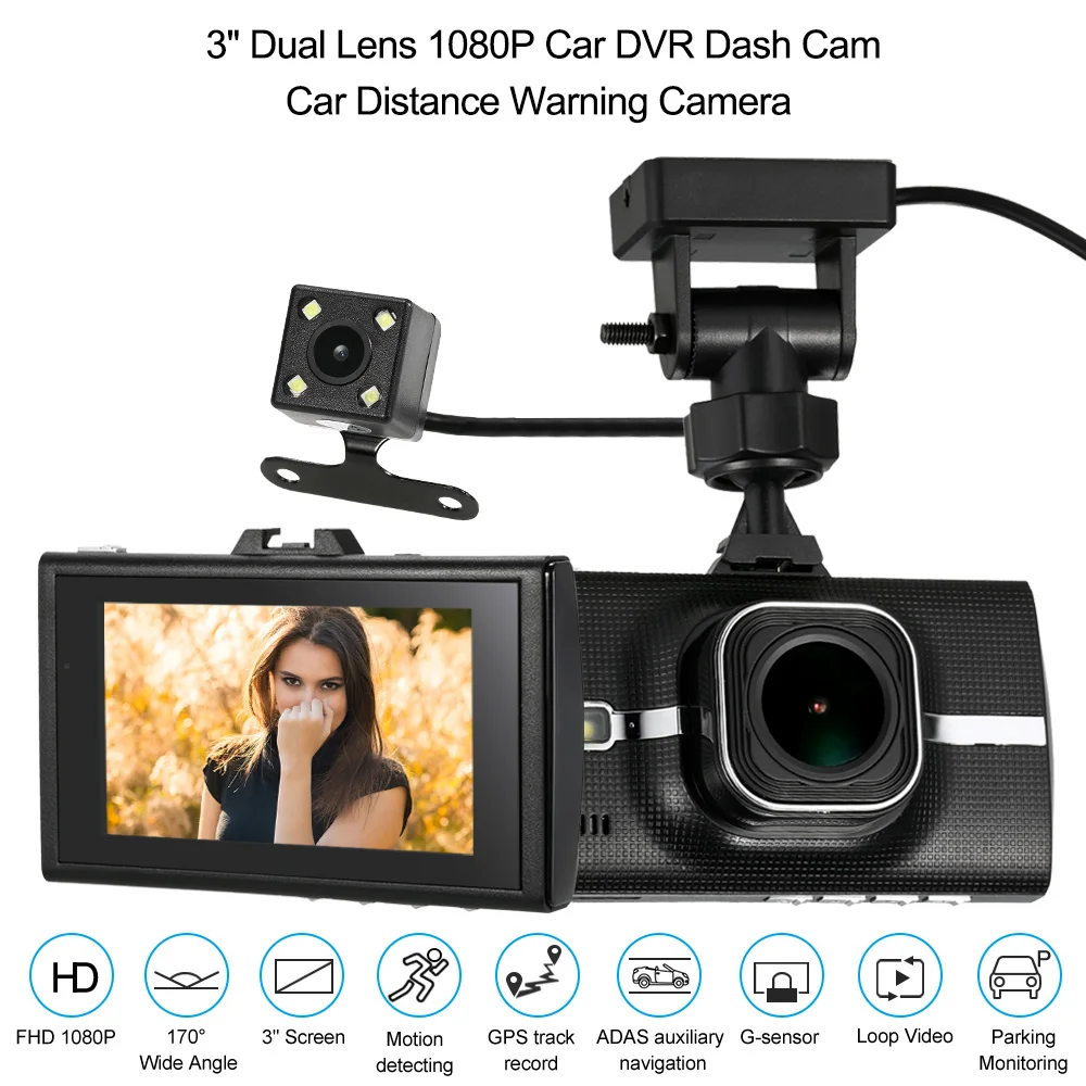 3" Dual Lens Car DVR Dash Camera 1080P Dash Cam Camcorder w/ GPS Tracker / ADAS / LDWS / Parking Monitor / Motion Detection